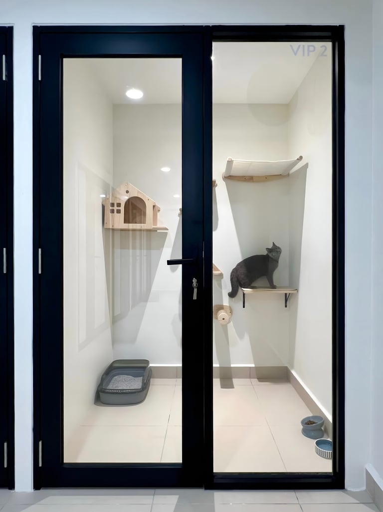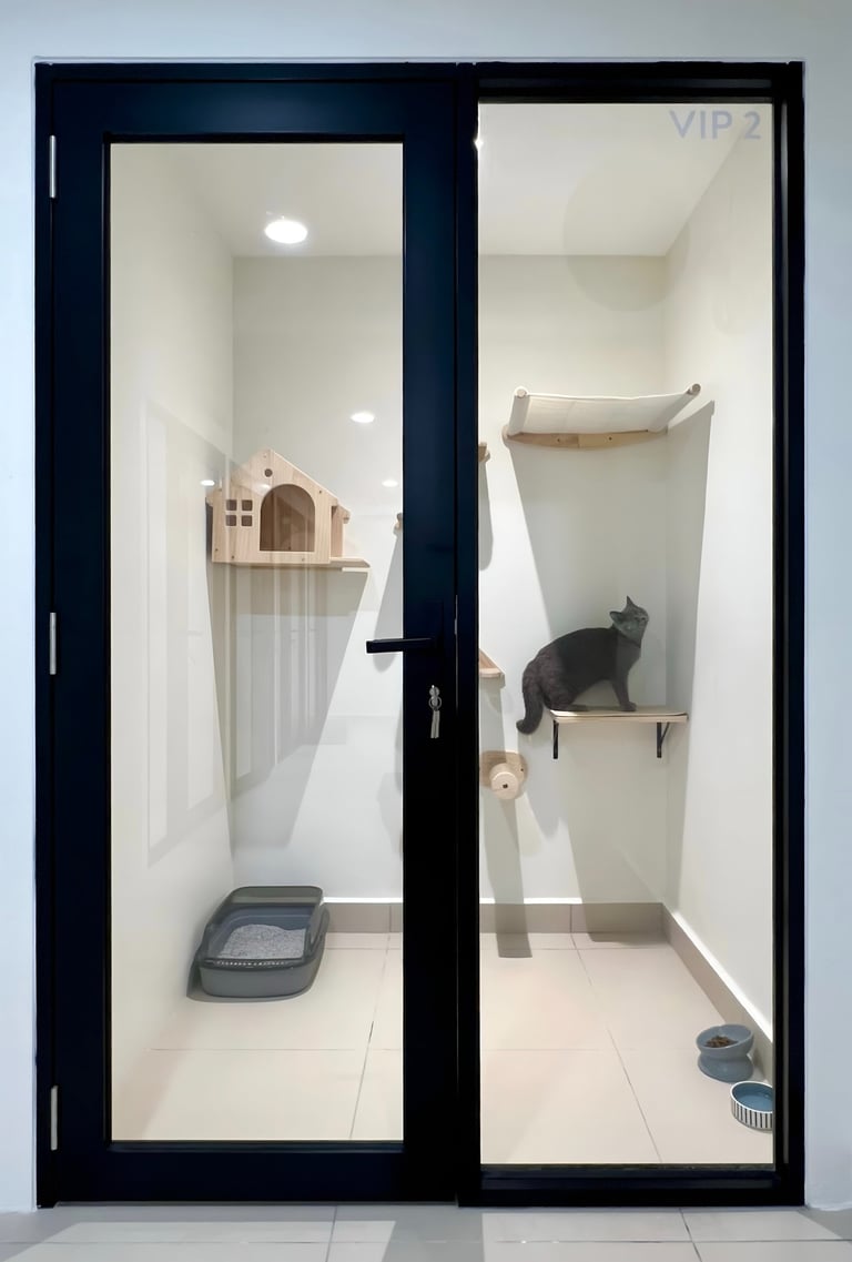 For added reassurance, we also offer CCTV access (Executive & VIP Suites) from 8:00 PM to 7:30 AM, so you can check in on your cat during the evening and overnight hours. Whether you’re traveling or just missing your furry friend, you’ll have peace of mind knowing they’re safe and happy.